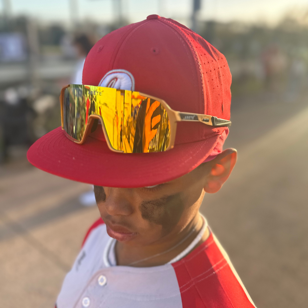 Featuring Gold Mirror Lenses and Gold Frames, the Golden Glory will give you confidence. It will give you strength. It will be a reminder of what you are chasing, whether that's a ring from this weekend's tournament, a district championship or the Little League World Series. Chase greatness and good things will happen.