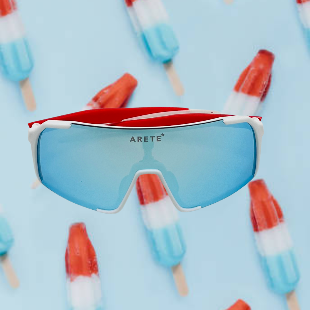 Featuring Red and White Frames and Ice Blue Lenses, The Red, White & Booms are the perfect way to showcase your grit, your resilience and your perseverance that got you to the top.
